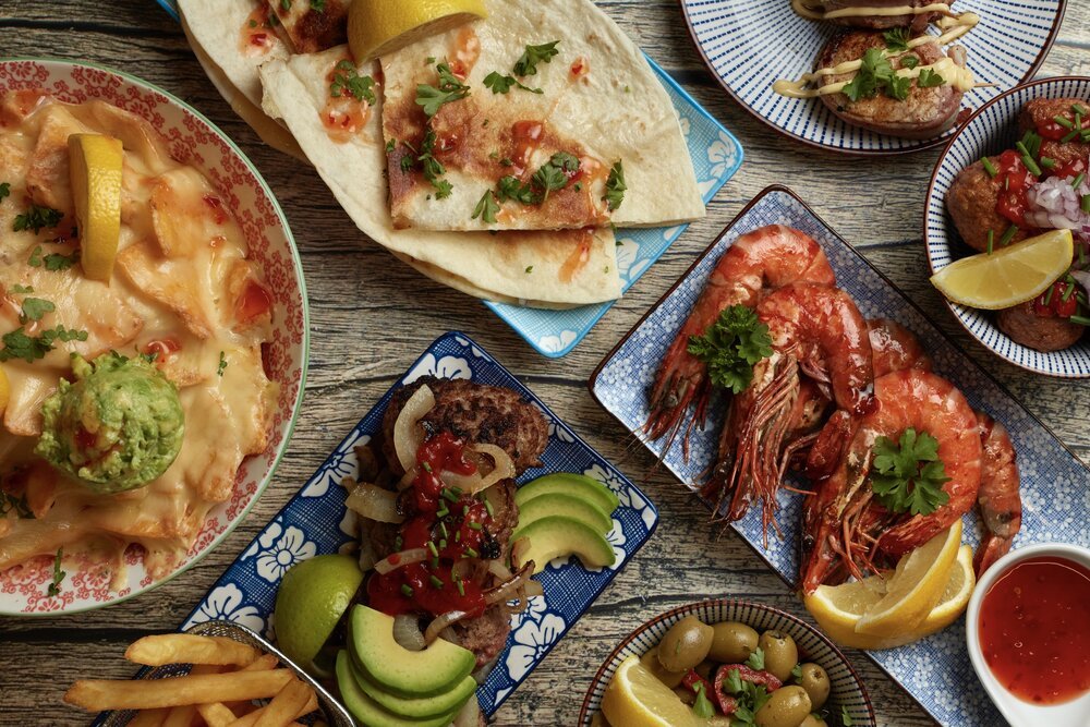 Last week, I set up a mobile photography studio in the production kitchen for food photography. The tapas shown below were photographed on one of my new foreground and background surfaces from Beste Ever Backdrops.