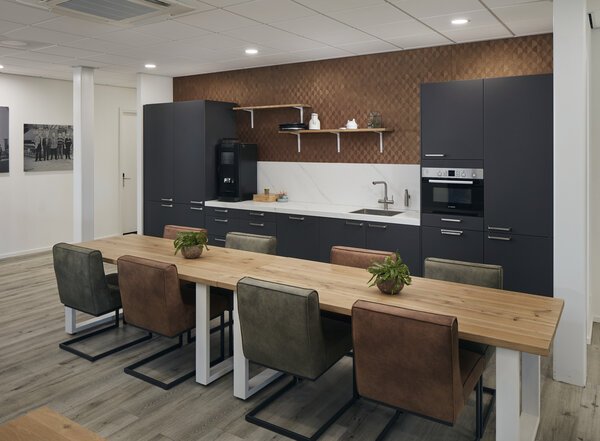 The interior design makes use of materials and products that Carpentier Mooren supplies to both private and business clients. This gives visitors to the office a clear impression of the company’s own range.