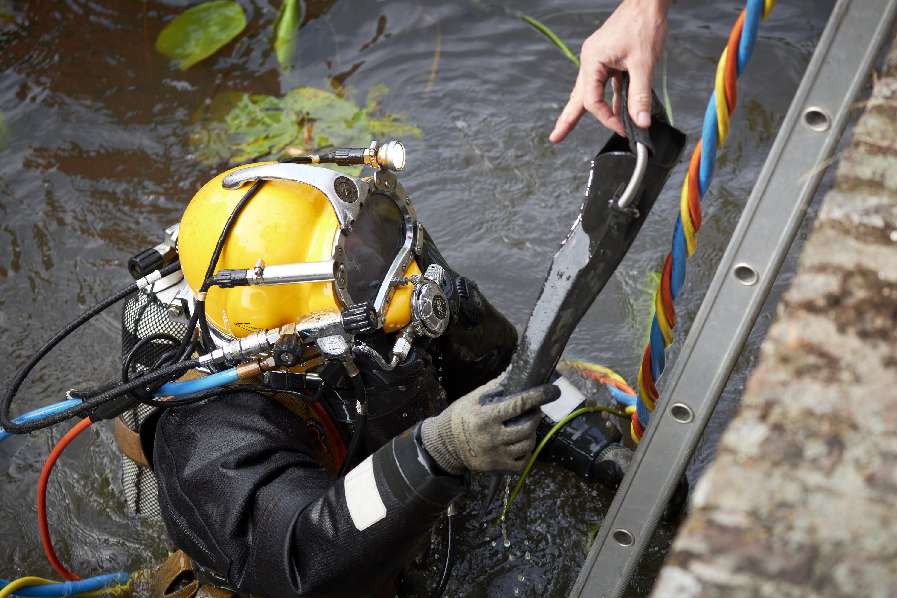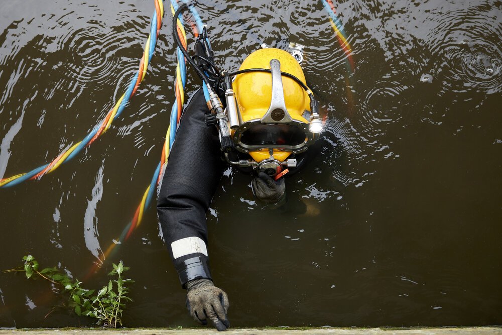An inspection in navigable waters requires careful preparation. The dive team can only enter the water once the waterway has been closed to shipping traffic.