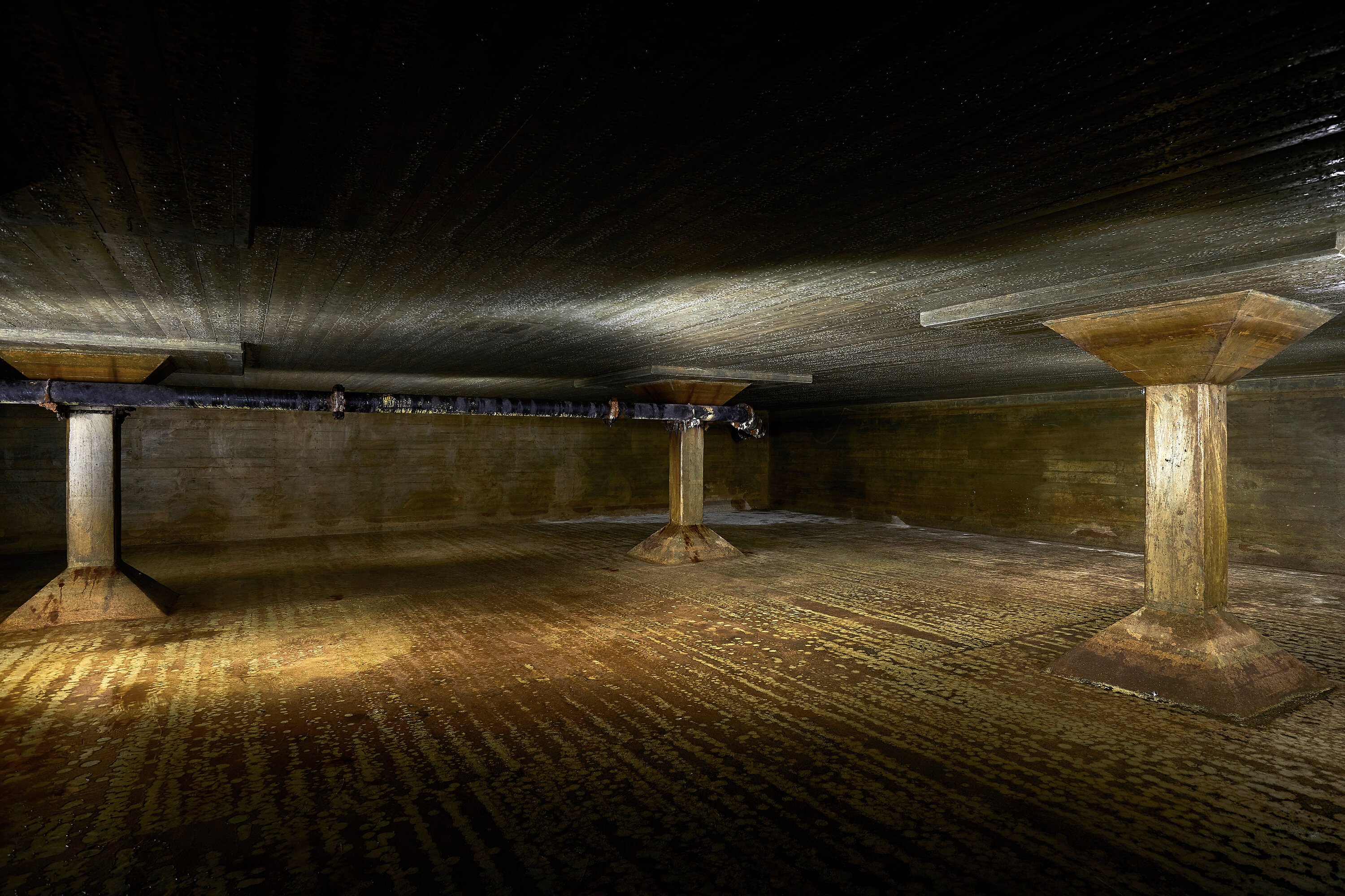 Voor je met een gebouw als dit iets kunt, moet er veel gebeuren. Los van het bestemmingsplan en andere (bouwkundige) uitdagingen zou het veel schelen als er daglicht in het ondergrondse reservoir zou komen. Als ik gedurende lange belichtingstijden nadenk over wat ik hiermee zou willen doen begint de creativiteit direct. Met het plaatsen van een aantal grote dakramen wordt de ruimte overdag verlicht en heeft het direct potentie voor woonruimte met letterlijk een authentiek industriële look. Daarnaast zou het uitzicht met een heldere hemel ook nog wel eens interessanter kunnen zijn dan de televisie.