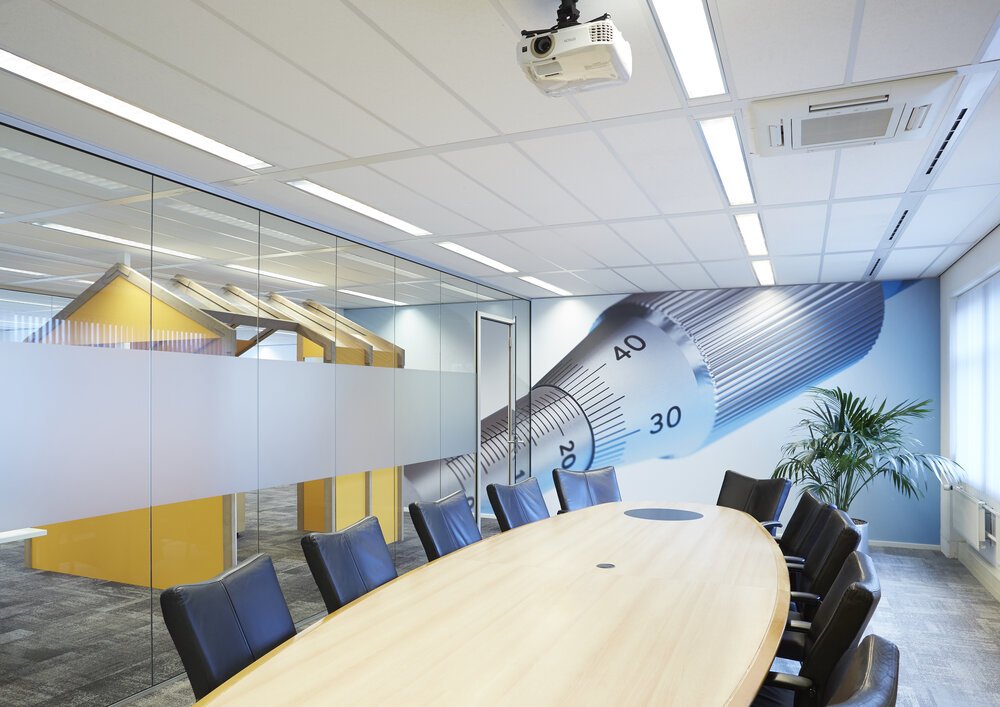 Kalibra verzorgt onder andere kalibraties van kritische proces-parameters. De architect wilde het warme interieur voorzien van elementen refererend aan de meetmiddelen waarmee Kalibra werkt.