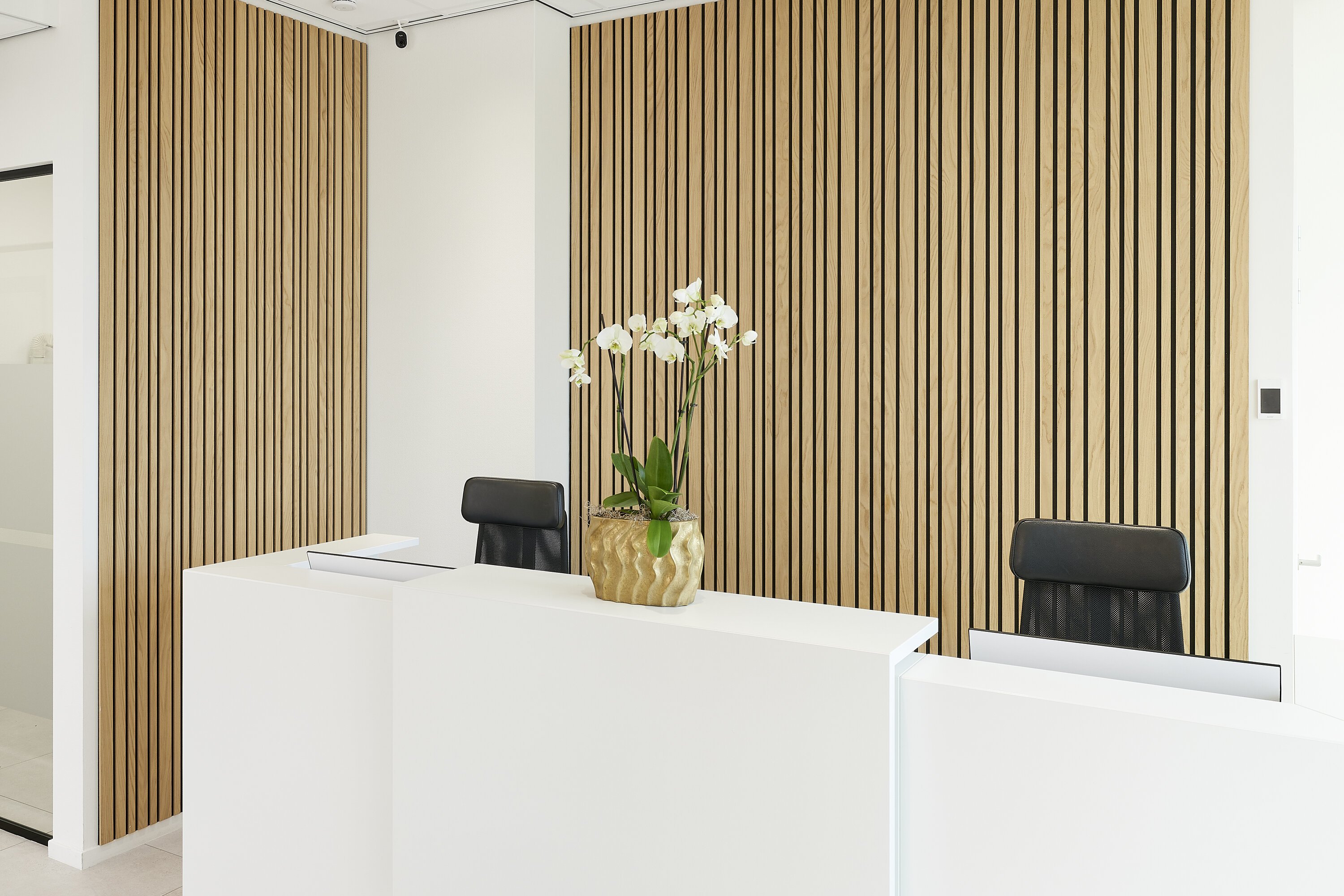 Hygiene is cruciaal in zorg- en medische instellingen. Het interieur van deze praktijk heeft een frisse en schone uitstraling. Door het gebruik van houten wandbekleding, bijpassende verlichting en houten meubelen krijgt het een warme sfeer.